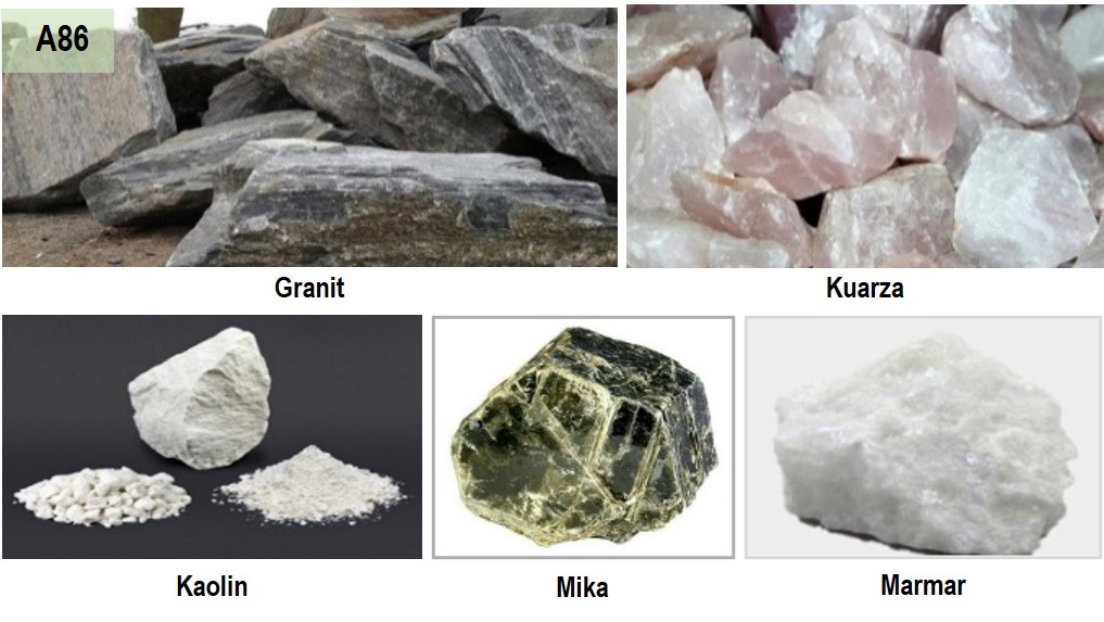 Sebarang batuan (contoh: granit, marmar) atau hasil luluh hawa batuan (contoh: kaolin, lempung bebola, pasir) atau mineral (contoh: kuarza, mika, batu permata).