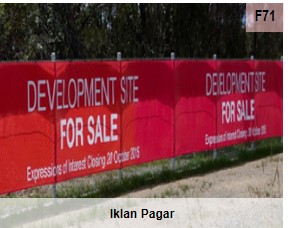 Pengiklanan yang dipasang pada pagar sementara untuk tujuan keselamatan semasa pelaksanaan sesuatu projek binaan atau iklan pada pagar yang dipasang bagi menutup sesuatu visual yang kurang menarik. (f132)