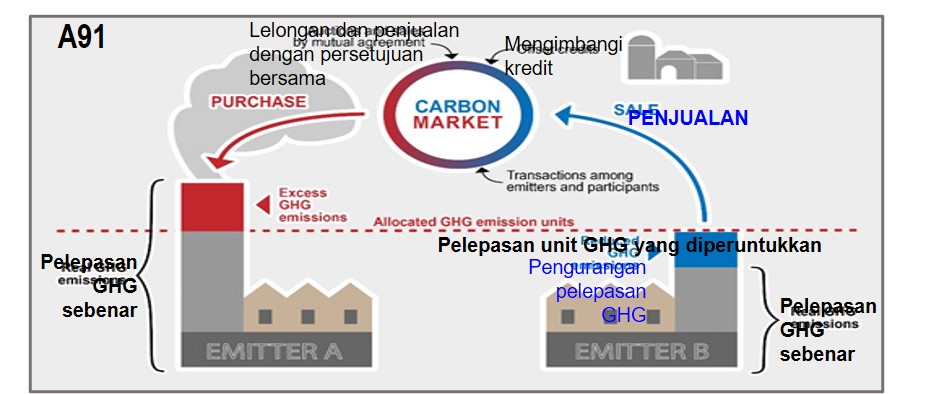Dasar dan amalan yang membenarkan syarikat untuk membeli atau menjual peruntukan/kuota yang ditetapkan oleh kerajaan bagi pengeluaran karbon dioksida.