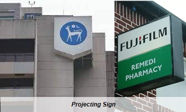 Pengiklanan kebiasaannya bersaiz besar yang dipasang pada permukaan struktur yang diunjurkan dari dinding sesebuah bangunan. (f135)