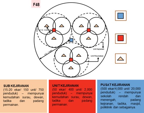 Model reka bentuk perumahan bagi 400 unit rumah atau 2,000 orang penduduk yang mengandungi kemudahan surau, dewan, tadika dan padang permainan. (f98)